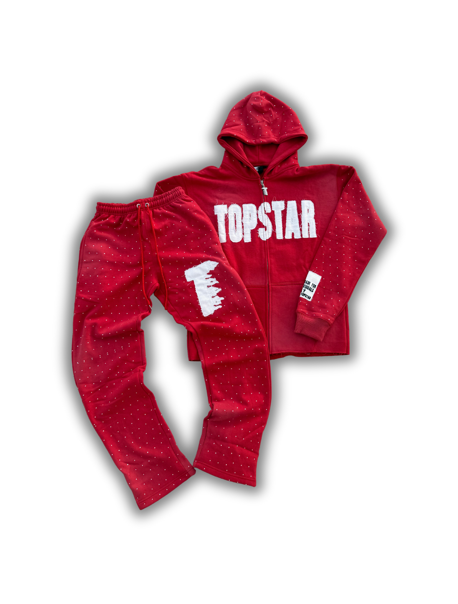 Introducing the Fly Individual Set in Red! Made from luxurious rhinestone cotton, this set promises ultimate comfort and style. With its bold red color, it's perfect for making a statement or adding a pop of color to any outfit. Upgrade your wardrobe with this must-have set today.