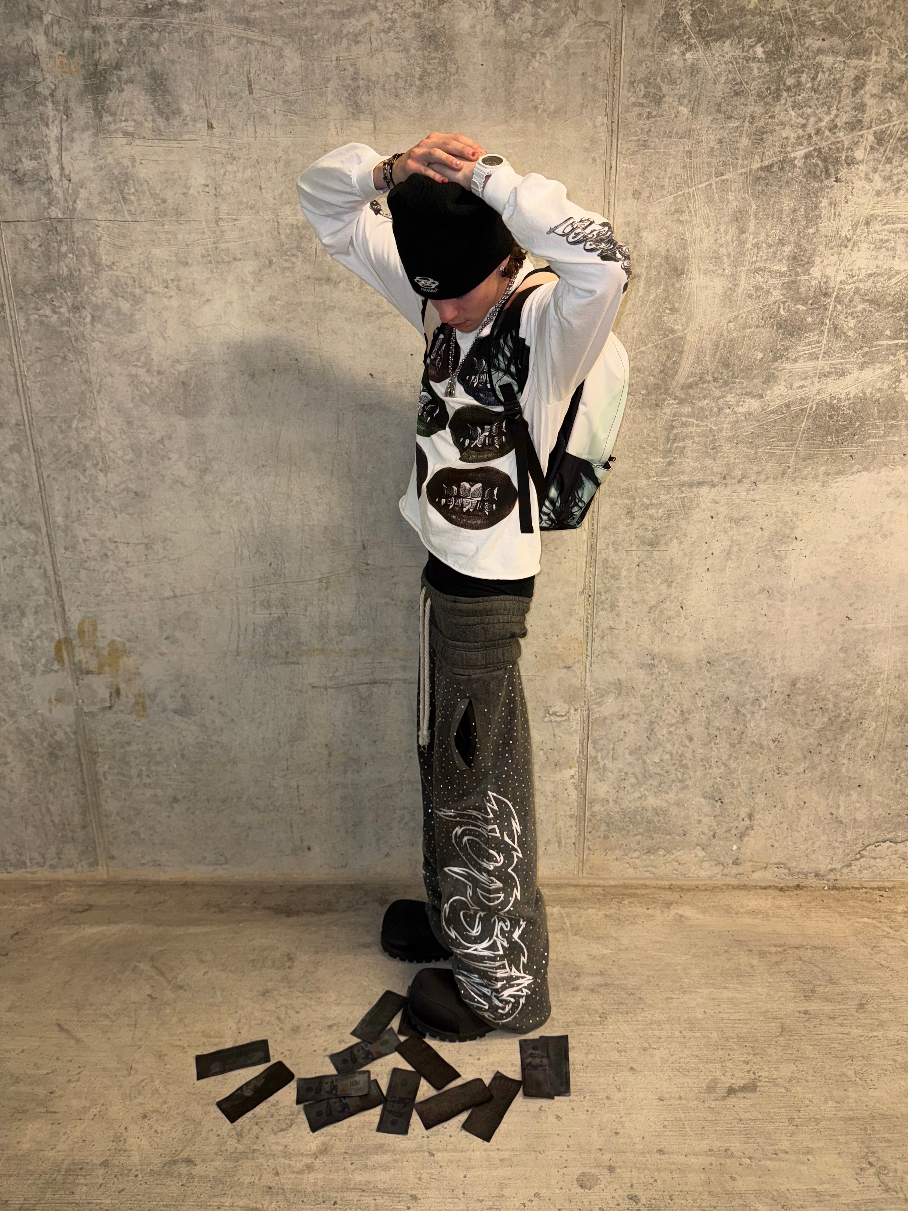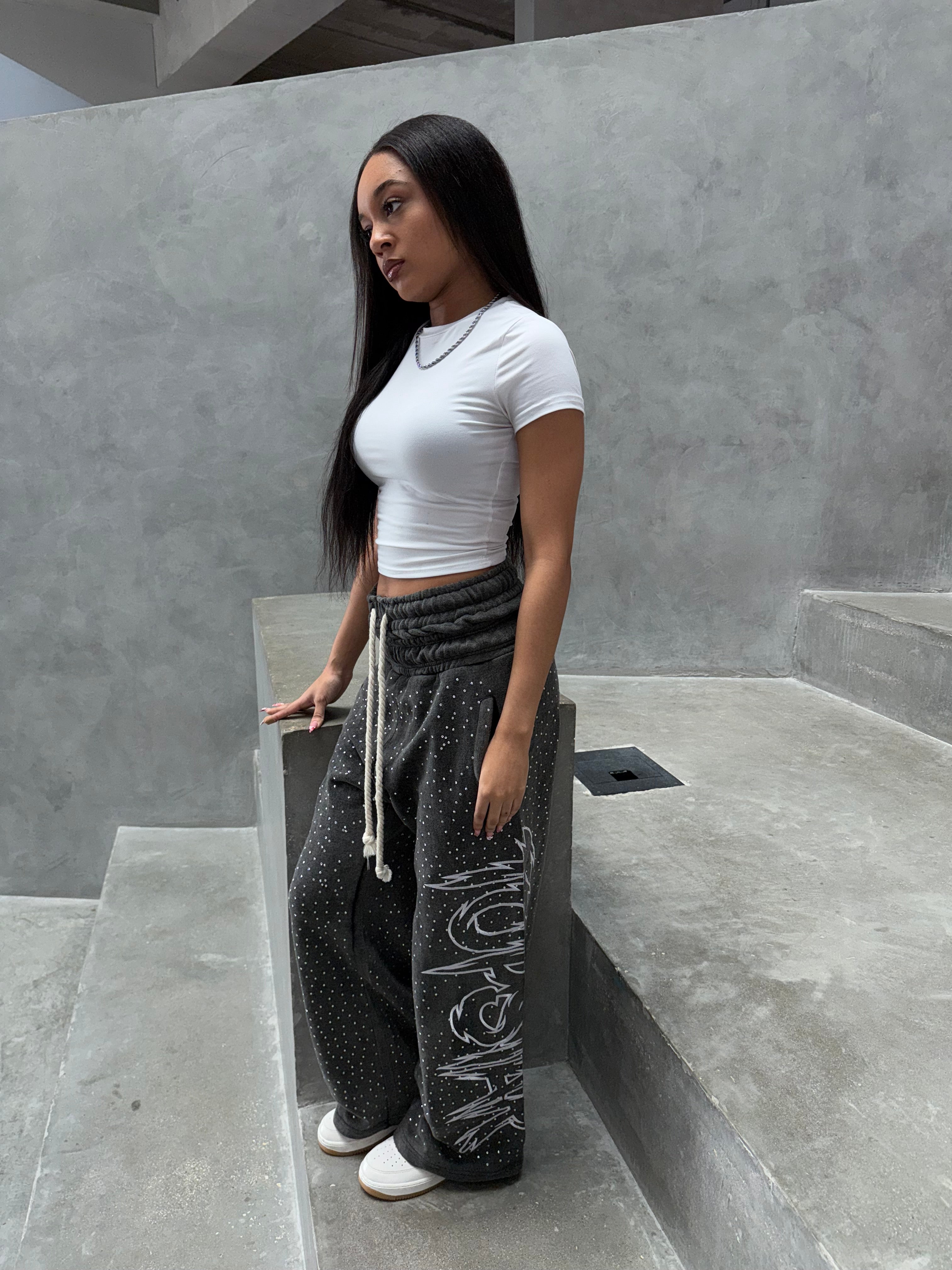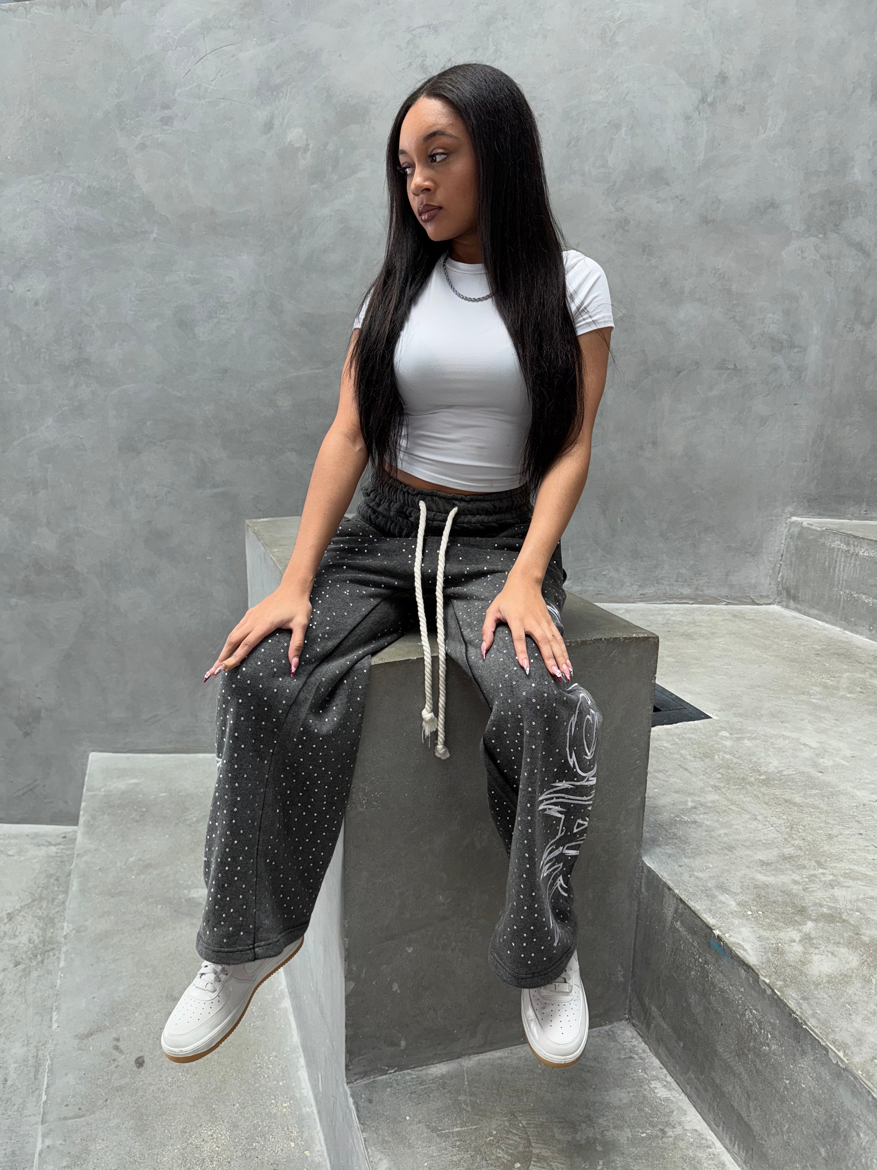 DOUBLE WAISTED RHINESTONE SWEATS