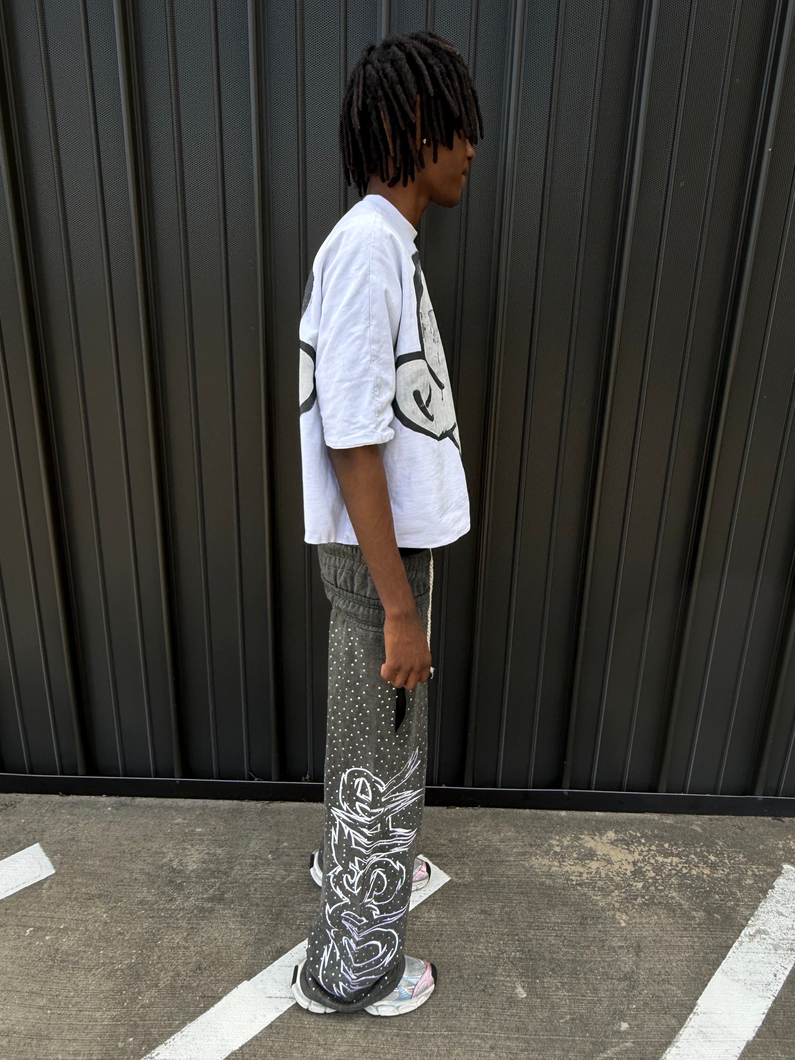 "Double Waisted Rhinestone Sweats"(Black)